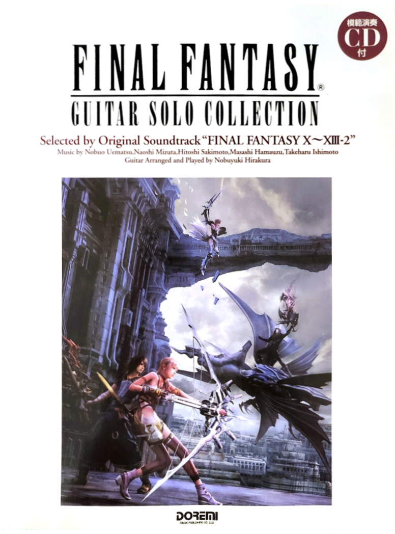 The Guitar Solo Final Fantasy Official Best Collection was published by KMP in 2008 and it’s arranged by Yuji Sekiguchi (関口祐二). It has 25 pieces from Final Fantasy I to XII. KMP updated this book in 2011 and changed its name to Final Fantasy Official Guitar Solo Selection. It has 51 pieces from Final Fantasy I to XIII, including Type-0. It’s still arranged by Sekiguchi, who worked on the Guitar solo Square Enix Official Best Collection book in the same year. It got another update in 2022, this time with 64 pieces from Final Fantasy I to XV, including the Final Fantasy VII Remake. It’s arranged by Hiroyuki Funae (船江寛幸) this time.
